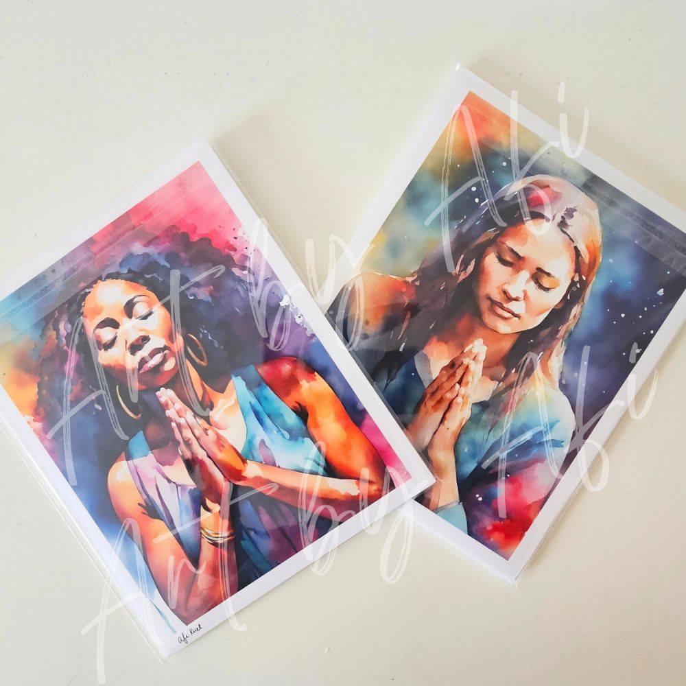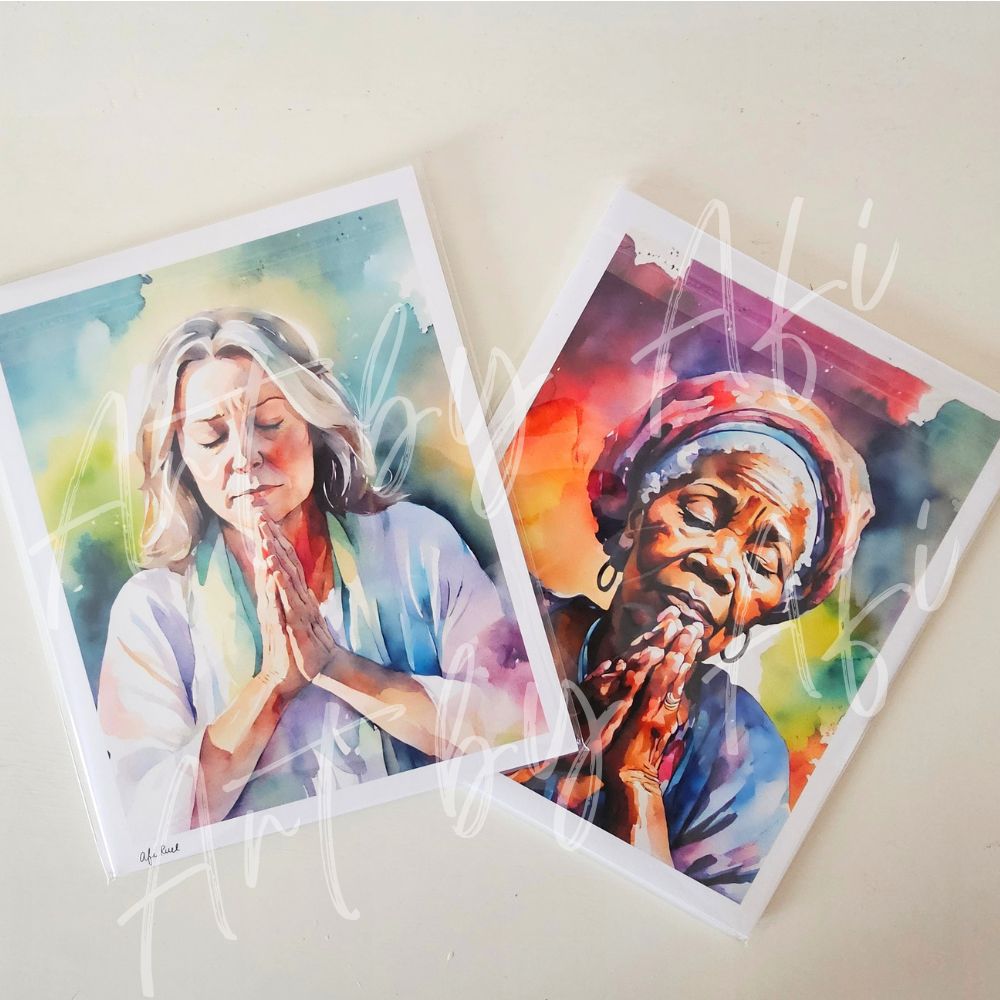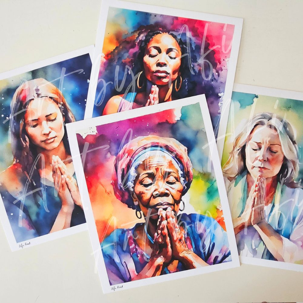 These pieces are part of the first release collection of The Praying Woman, a watercolor series exploring intimacy with God, stillness, and sacred surrender.