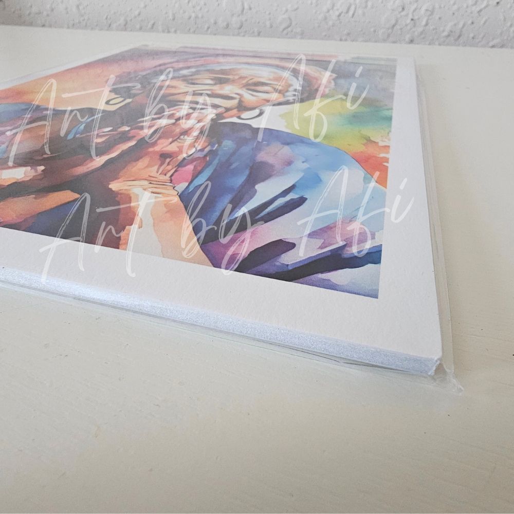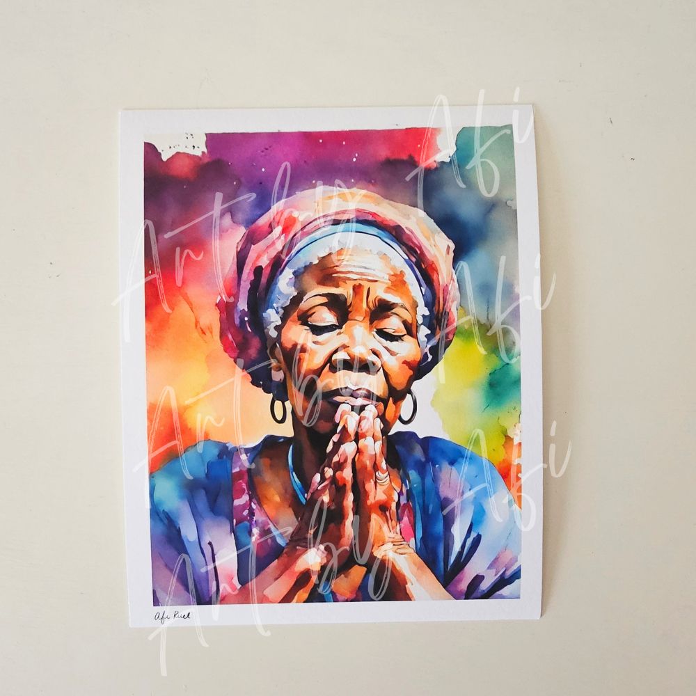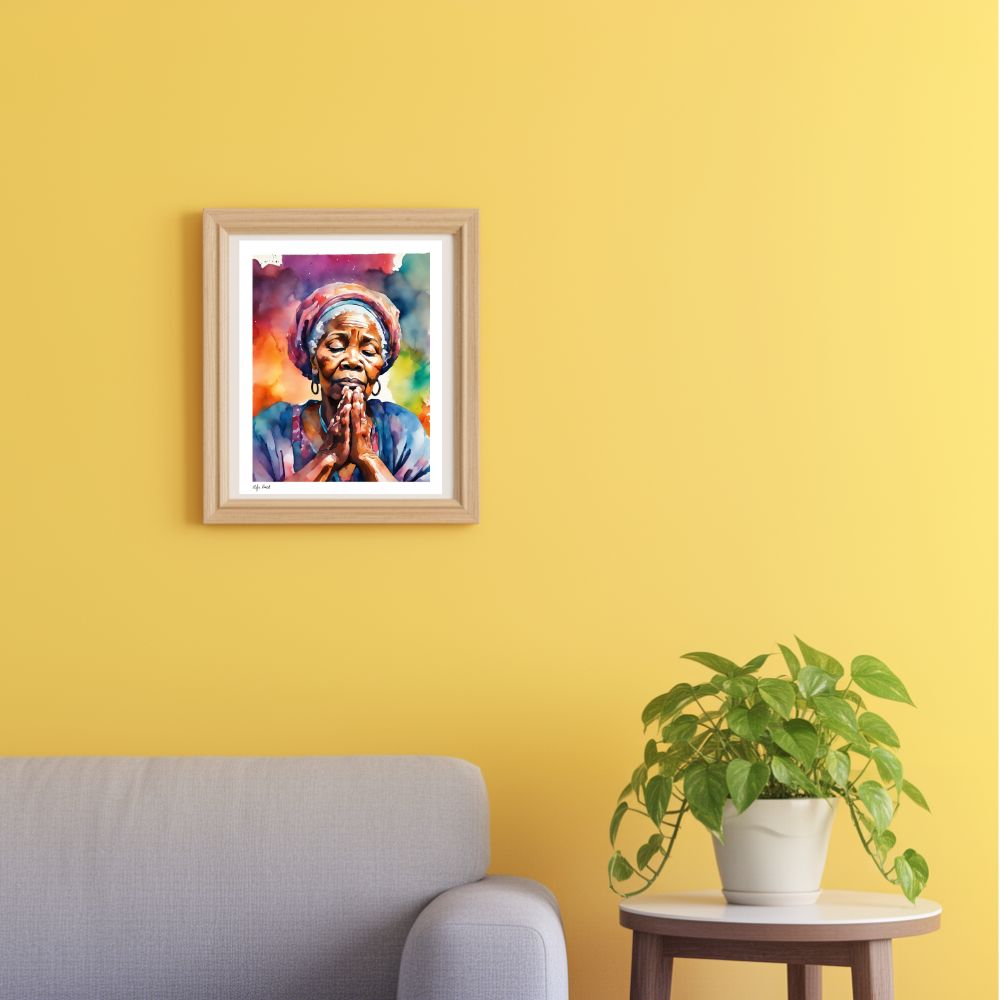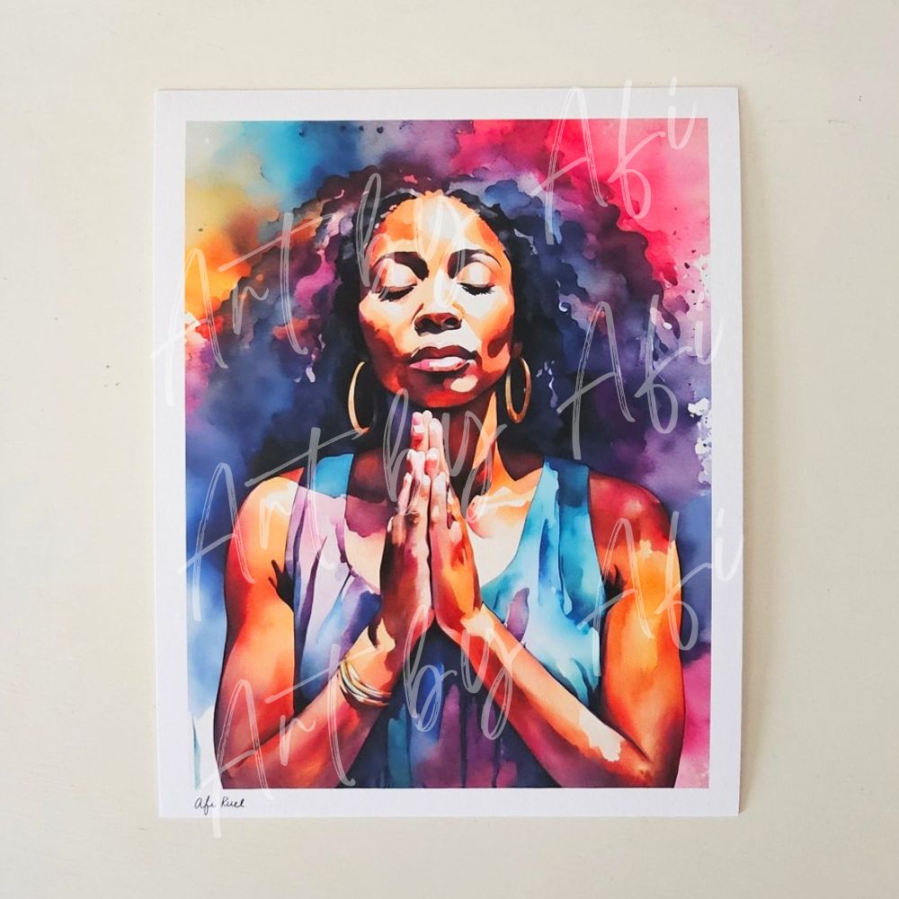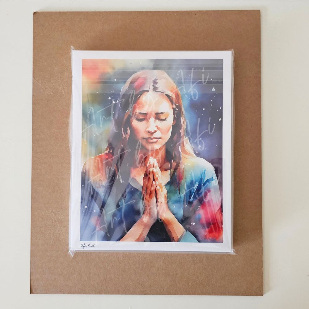 This artwork captures a quiet moment of prayer—where strength is found in surrender, and presence becomes the most powerful place a person can be. Created in soft watercolor layers, it is designed to bring peace, reflection, and spiritual grounding into your space.